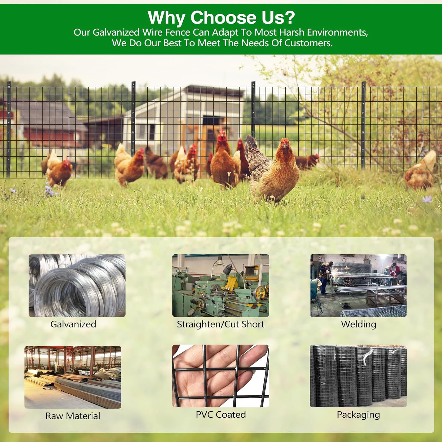 - š£š„šš ššØš š¤šØšššš§š¬ ššš”šš: Welded mesh fence is made of heavy-duty galvanized wire and available in black vinyl coating, its smooth surface makes it easy to clean, protects the environment and does not harm animals to maximize rust resistance and longevity.